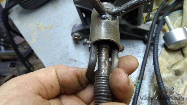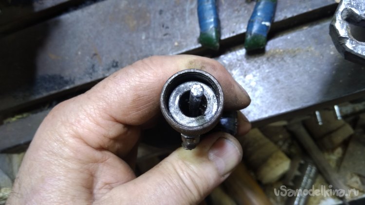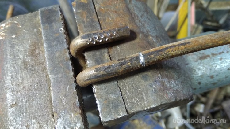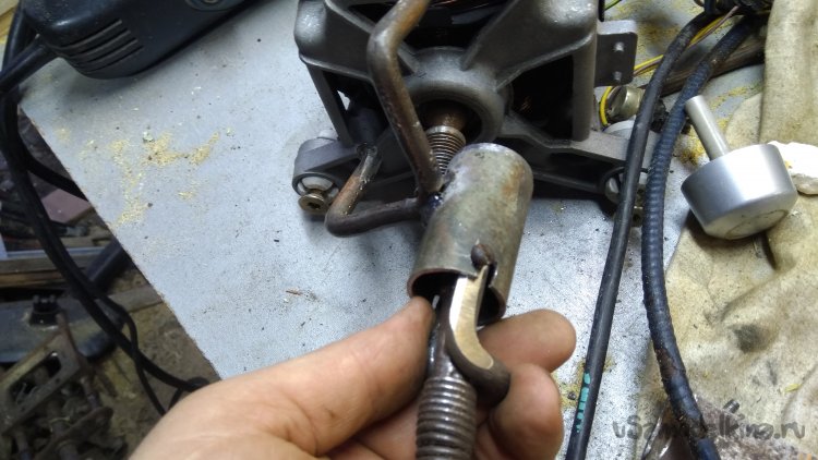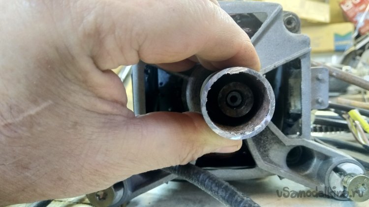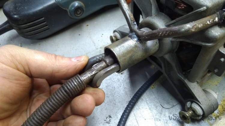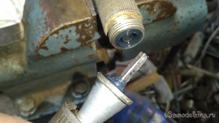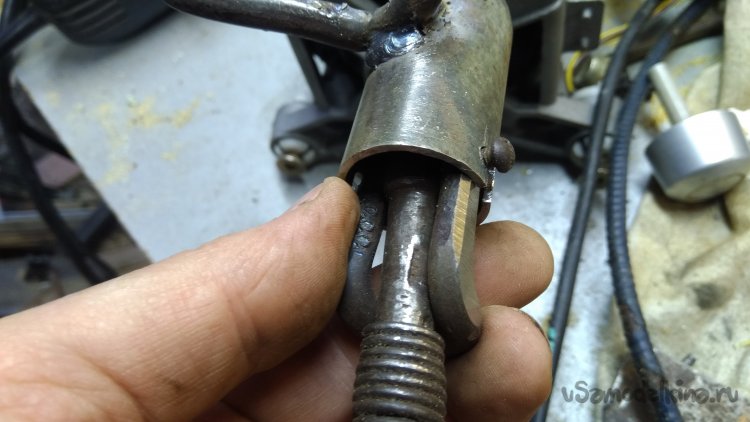 И ещё, надо чтобы было ровно и в размер. Оболочка гибкого вала должна входить внутрь этой вилки, а сама вилка должна входить в трубу.