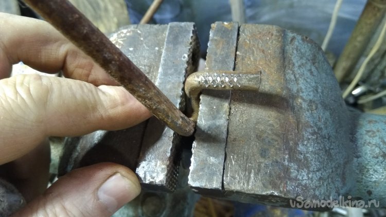 Приварил и отковал на квадрат этот кусочек металла. Он вставляется в квадратное отверстие в ручке, в которой зажимаются фрезы.