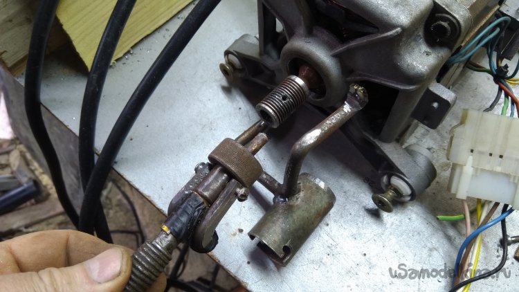 Со стороны мотора на тросик одел медную трубку и запаял оловом. Если будет нужда, заменю на стальную трубку и отпрессую.