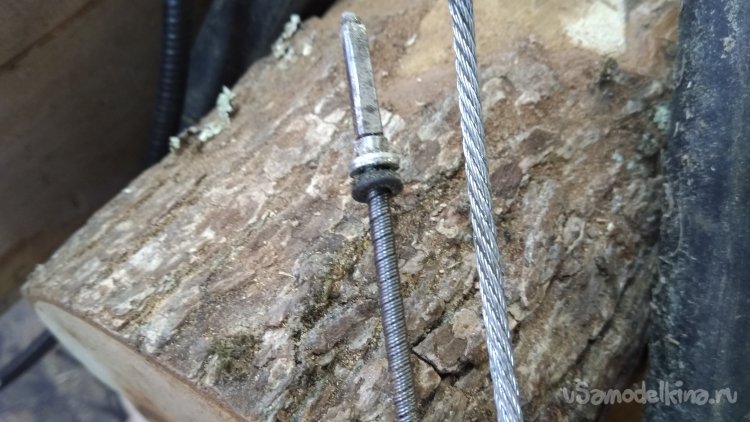 Квадрат больше чем мне надо на тросике, но короче, поэтому приварил кусок металла к уже обжатому на заводе наконечнику.
