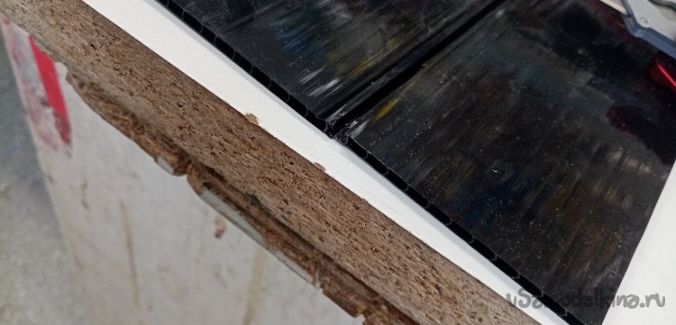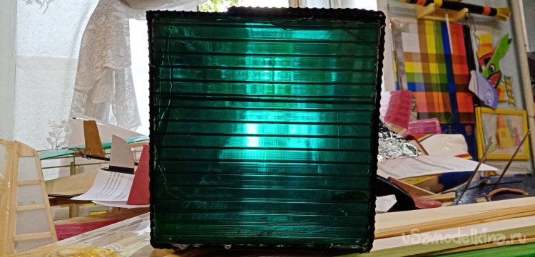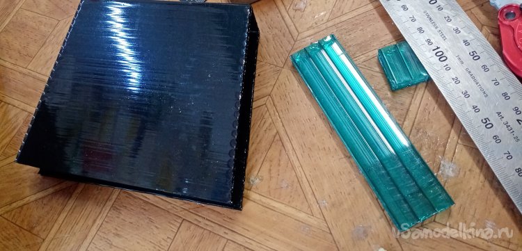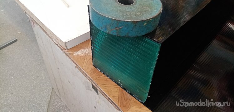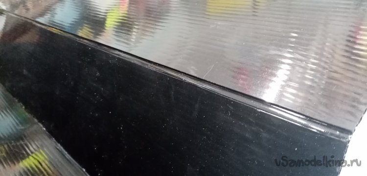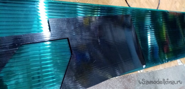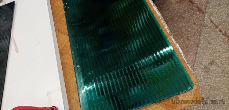 При выборе материала для изготовления, к нам случайно попал значительный кусок сотового поликарбоната, черного цвета и немного прозрачного зеленого. Начинаю испытания, чем можно склеить этот пластик.