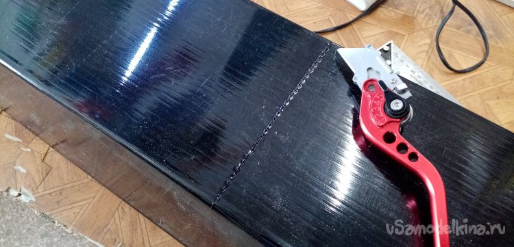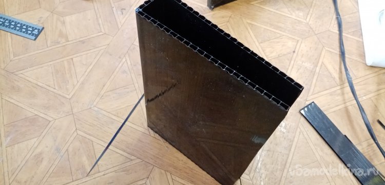 Сейчас нужно изготовить защитный чехол для рудера. В готовый пенал вставляю стапель и отмечаю необходимые размеры.