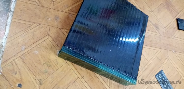 Склеился угол хорошо. Затем процедуру повторяю еще на трех, прорезаю, выдавливаю клей, сгибаю.