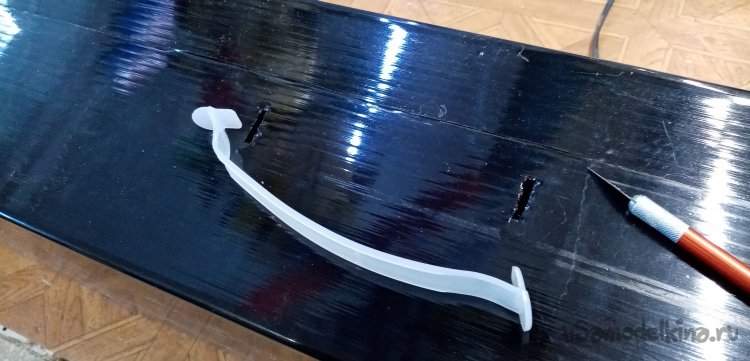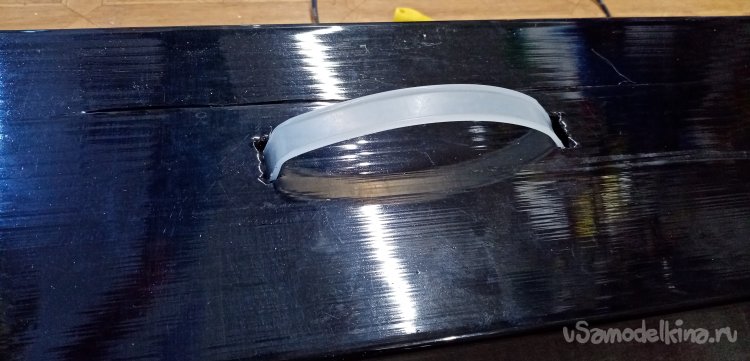 На верхнюю крышку врезаю ручку, предварительно определив центр тяжести пенала. Вместе с планером.