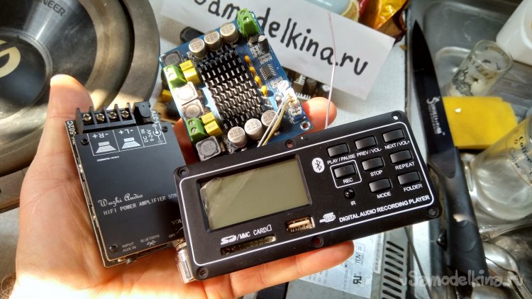 А дело в том, что мой бумбокс не запоминает место где прервалось воспроизведение с флешки при отключении электричества. Питать музыкальную коробочку от бесперебойника не вижу экономической целесообразности, а искать потерянный трек в аудиоспектакле из более сотни треков ну совсем не хочется. Купил MP3-плеер с памятью, но качество декодирования отвратительное, свистелка какая-то! Купил другой, более навороченный. Качество получше, память есть, запоминает место остановки, но неудобный интерфейс. Послушал какое-то время, стал раздражать циканьем на высоких частотах и отсутствием басов. Ну в общем не слушается, в смысле я его слышу, но слишком пристально стал замечать недостатки. Да и что можно ожидать от простенького бумбокса через который я запустил сигнал от MP3-плеера. Есть у меня и JBL колонка, громче но не лучше. Да и другие Шарпы и Сони не отвечают моим хотелкам. Тащить в мастерскую под навес на улице S-90 не очень хочется. Да и я хотел мобильную, но при этом качественную музыкальную установку, чтоб и в огород можно было утащить на прополку грядок, и из одной мастерской в другую можно было легко переставить.