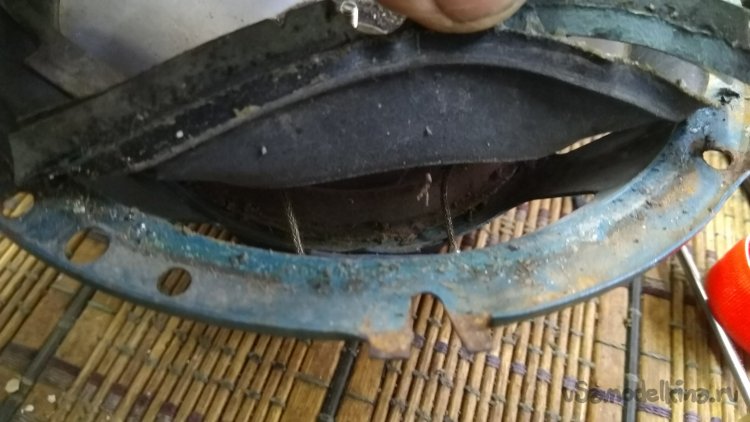 Полиуретановый подвес аккуратно поддеваем и отклеиваем от корзины.