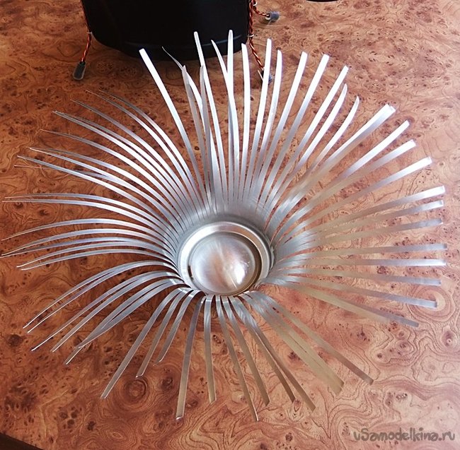 Закрепление деталей узора можно делать клеем, тонкой проволокой и узкими полосками из металла пивной баночки (соответственно другой) Устанавливаем свечу. Большая здесь не очень подходит. Лучше использовать стандартные и короткие