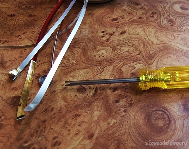 Для завивки концов полосок и создания ажурности используем щелевидную отвертку