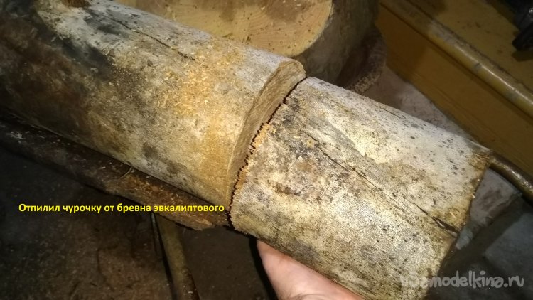Отпилил чурочку от бревна эвкалиптового, большая ветка порченная короедами упала, а я привёз домой.