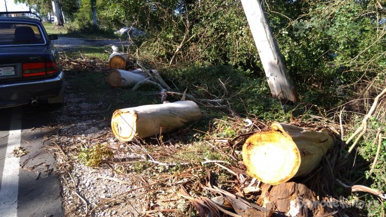 Хотя у нас и вот такие встречаются. Ветром валит деревья. Поднять такое бревно нереально, тяжеленные. Эвкалипт сырой тонет в воде.