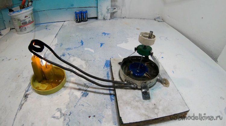 Есть такой "пердящий мотор", на нем делают кораблики и так далее. Попробовал отдельно разместить змеевик, посмотреть что будет. Мощности для турбинки конечно маловато, но явление интересное.