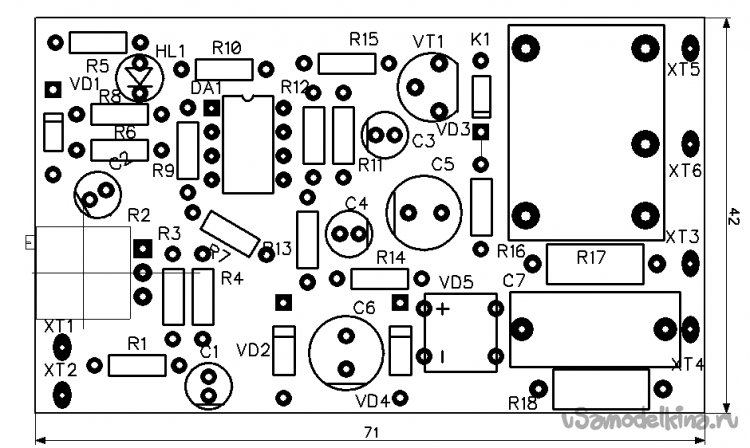 Регулятор смонтирован на односторонней печатной плате фольгированного стеклотекстолита толщиной 1…1,5 мм(рис.3).