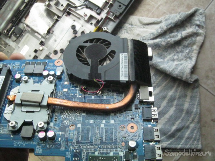 Фото 2. Пациент – ноутбук марки НР Pavilion g6. Анамнез – кроме повышенного шума от вентилятора, сильный нагрев угла где он установлен – тепло вместо выдувания наружу корпуса, скапливается внутри. Чистить и немедленно.