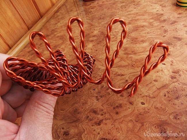 Для этой поделки, изготовление которой не составляет никакого труда, понадобится 2,5 метров медного лакированного провода диаметром около 2-х мм (в его отсутствие можно сделать из другого мягкого провода).