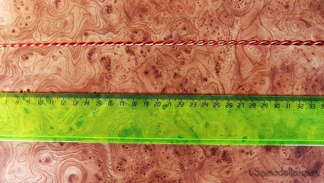 Далее полученный витой провод еще раз навиваем на пластину. Можно использовать пластмассовую линейку,как на примере