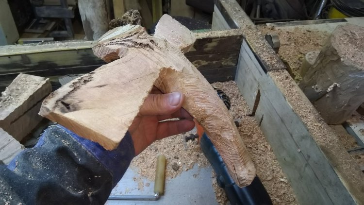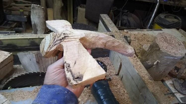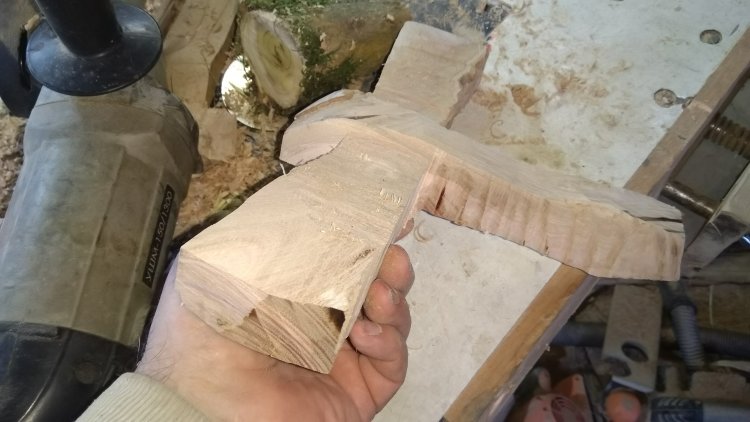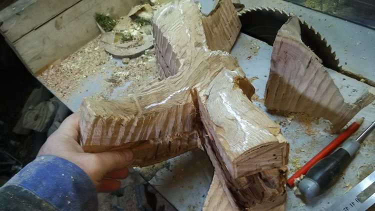 Ну и ладно, брал вообще на дрова. Баню топить годится любое дерево. Но корявые ветки пилить неудобно, топором их не разрубишь. Эвкалипт вообще после высыхания как кость. А у меня эта ветка именно такая, сухая и крайне крепкая. И вот глядя на эту ветку с рассохой, развилка так называется, рассоха )) Вот глядя на эту рассоху увидал я что можно из неё сделать.