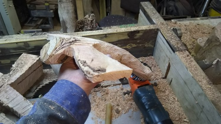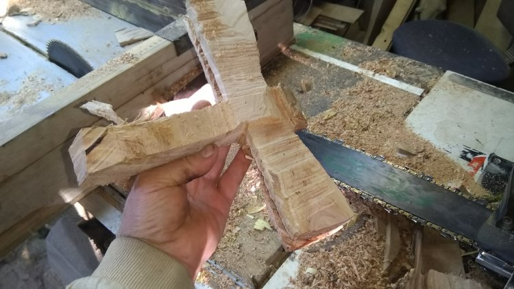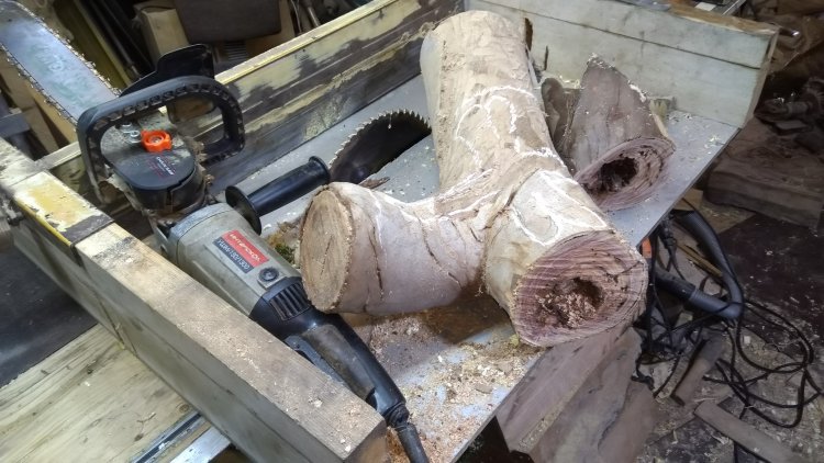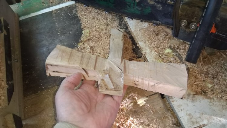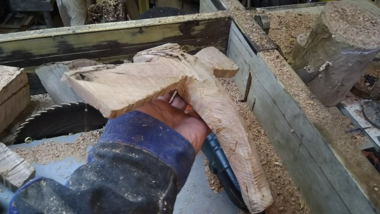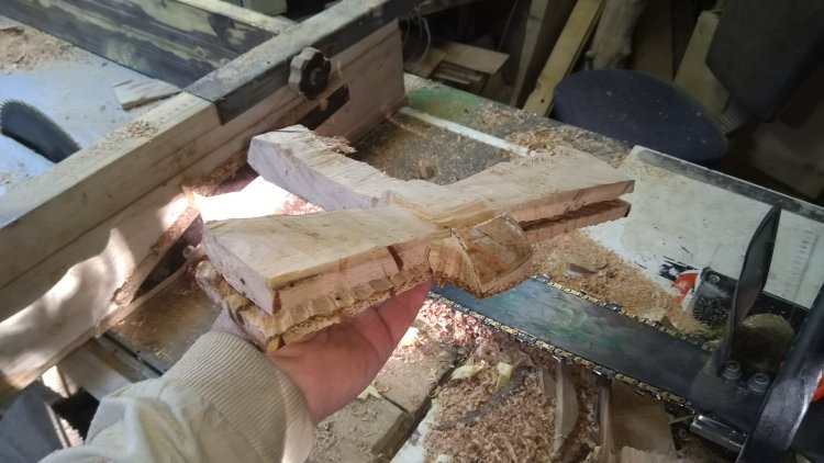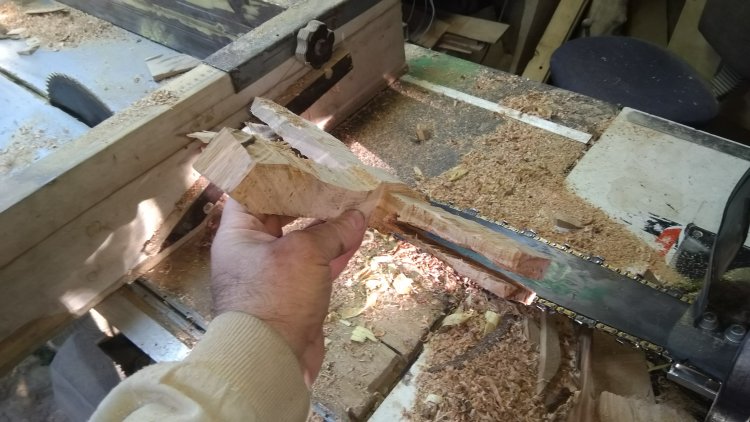 Ещё и лишку пильнул. Дерево хоть и крепкое, по пила пилит весьма эффективно и быстро. Тут не зевай, малейший промах может быть фатальным.