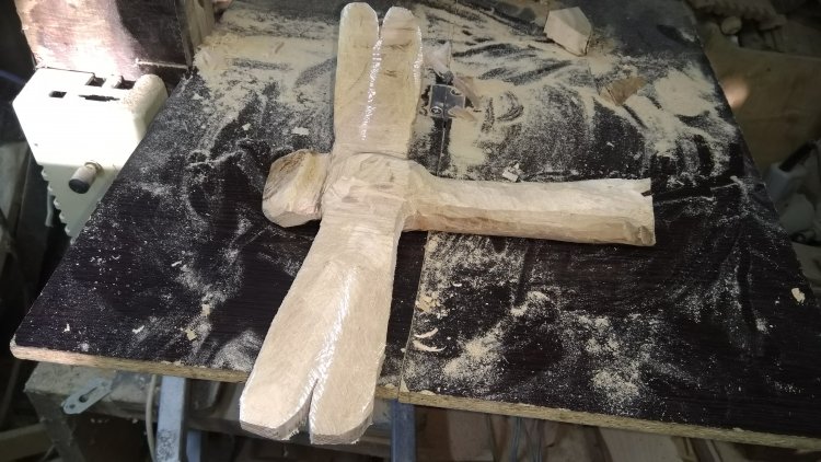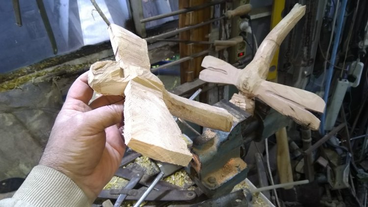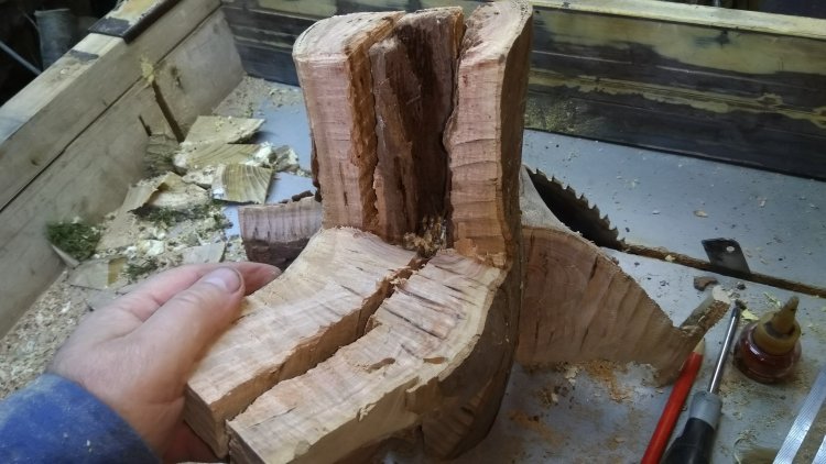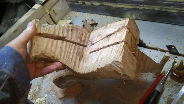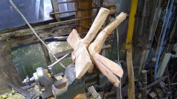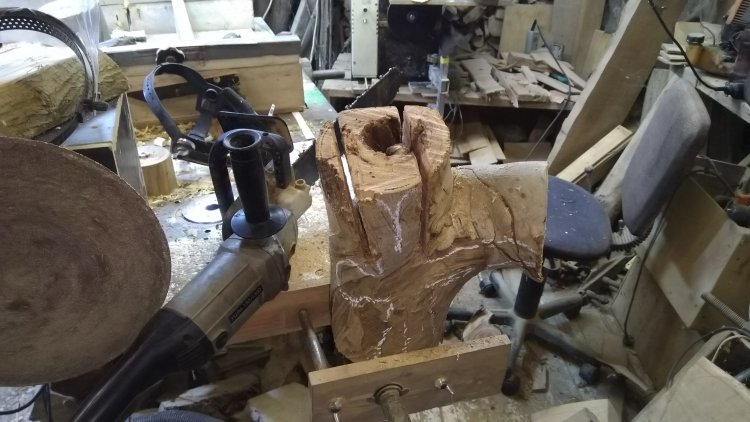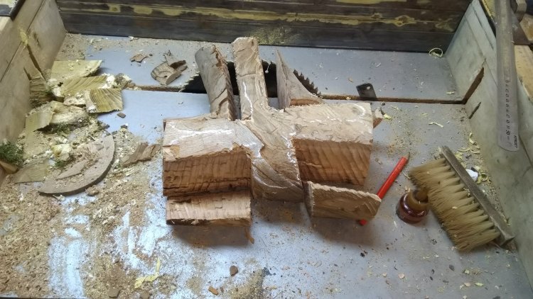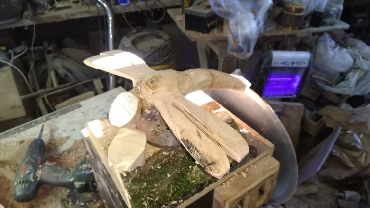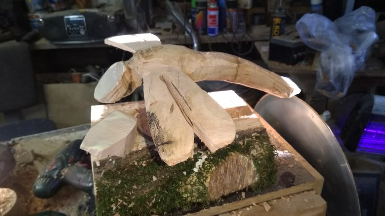 Смоляной дефект на голове пришлось срезать и приклеить туда кусочек из обрезков.