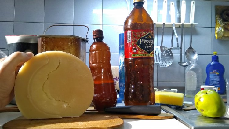 Бутылка после паровой бани, она со смесью пчелиного воска и льняного масла. Были одинакового размера, но на пару скукожилась.