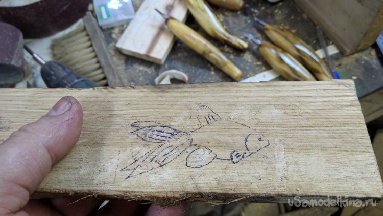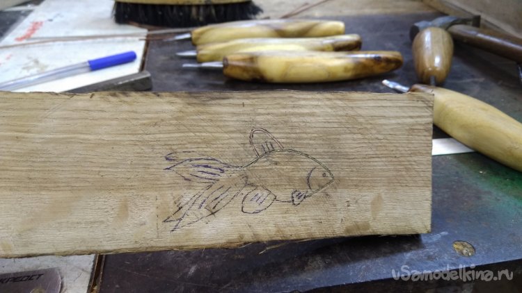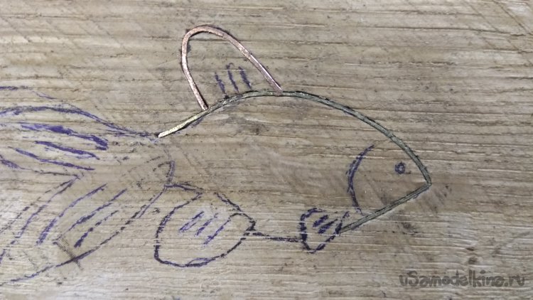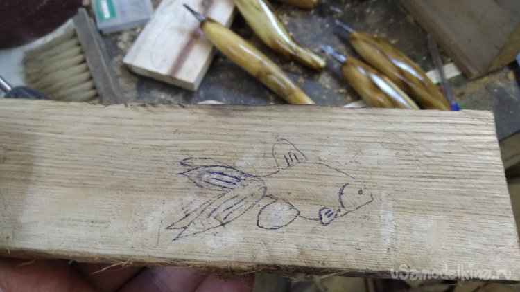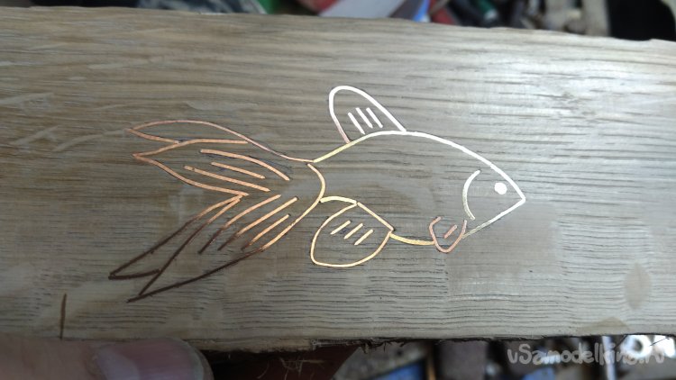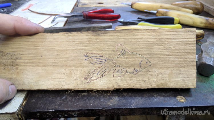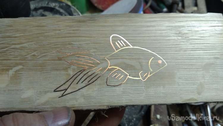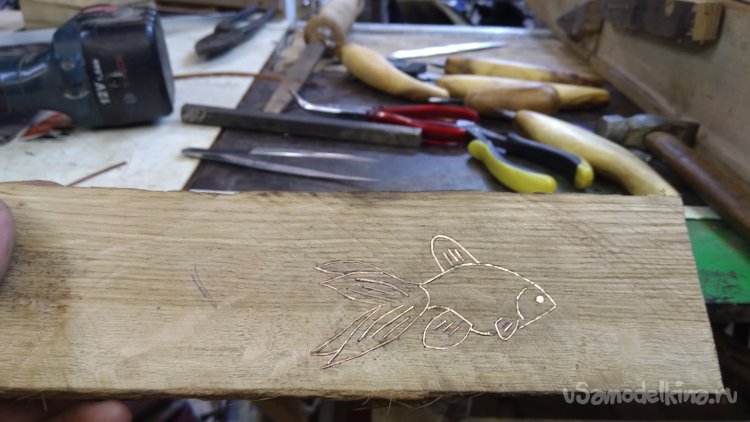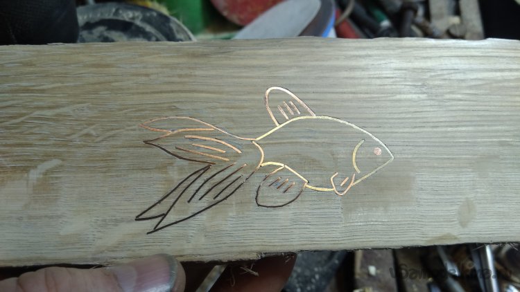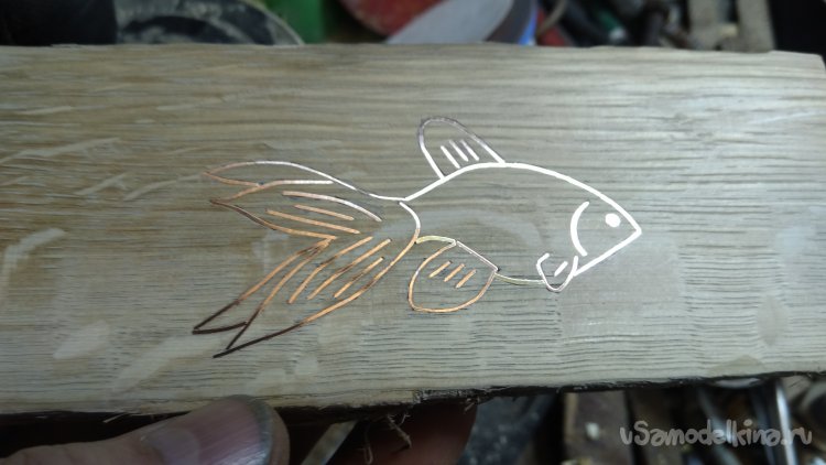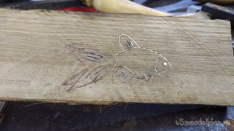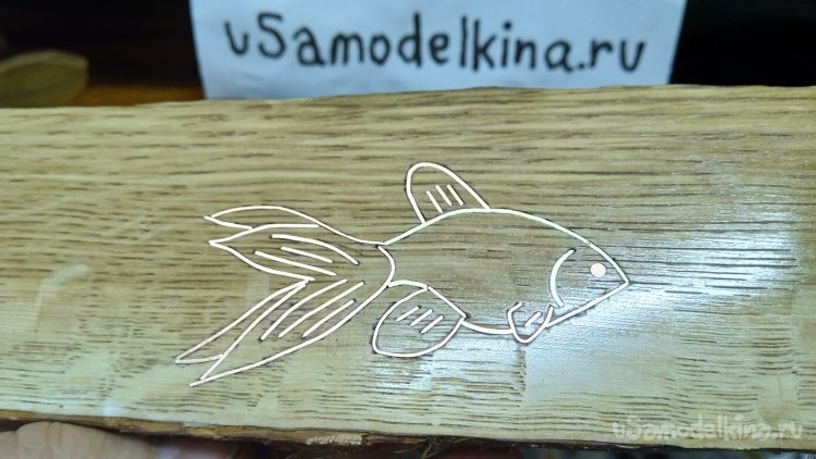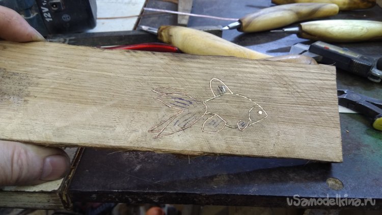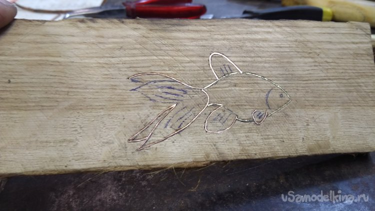 Но это я всё об инструменте, но без него думаю такие штучки невозможно сделать, а сделал я на дубовой дощечке вот такую рыбку. Делал для пробы резцов и наработки навыков в инкрустации.