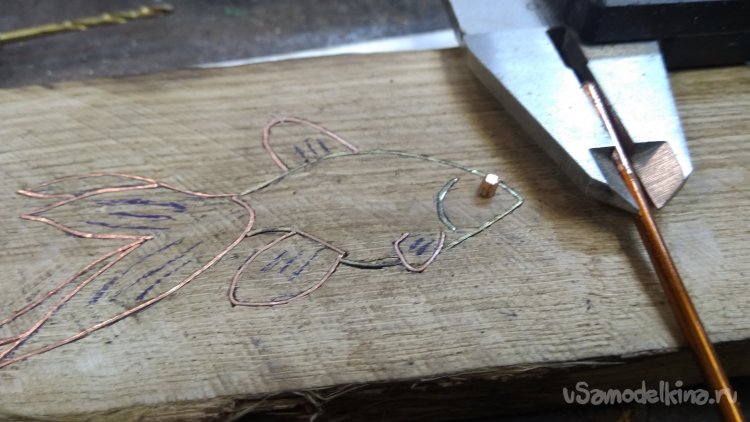 Попробовал использовать алюминиевые полоски для прорисовки на плавничках. Не годится. Мне не нравится.