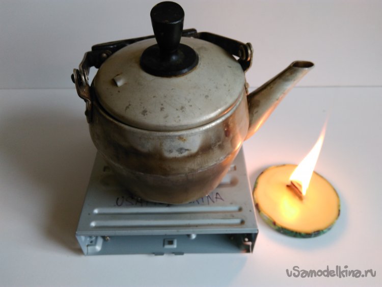 Воск очень хорошо горит, и дает отличную температуру для закипания воды.