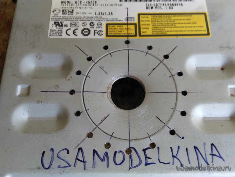 Накернил, просверлил отверстия. Сверло у меня диаметром три мм. Размер подобран не зря, это еще нам пригодится, опишу ниже.