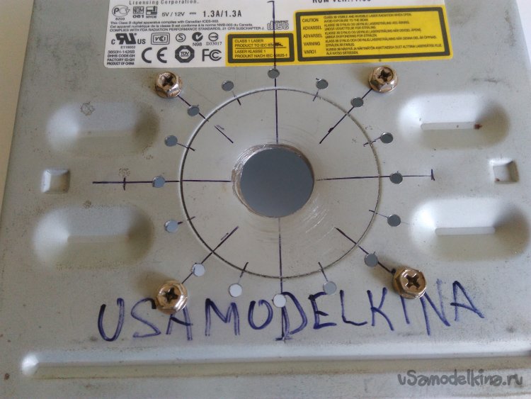 На донышке я тоже добавил четыре отверстия погоже диаметра и под такие же винты. От краев отступил по 15 мм. Вкрутил винты.
