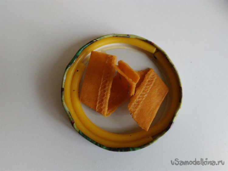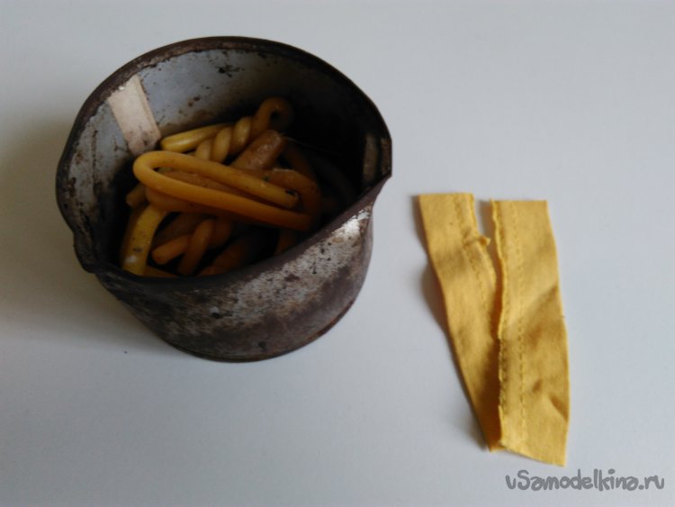 Для фитиля я вырезал из хлопковой ткани две полоски. Шириной 2 см. длинной около 7-8 см.