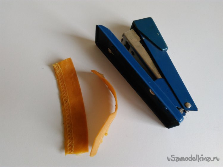 Фитиль почти готов. Скрепил канцелярским степлером две пропитанные полосы, можно и сшить.