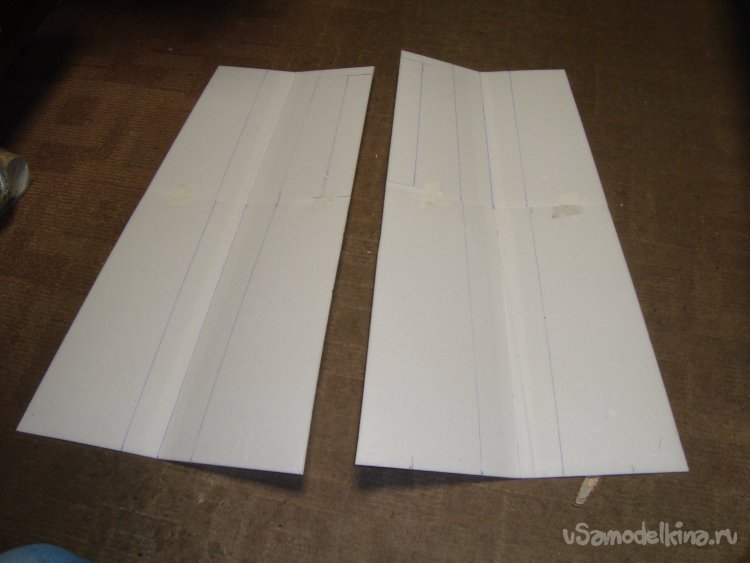 Вырезал из потолочки заготовки на каждую консоль крыла.