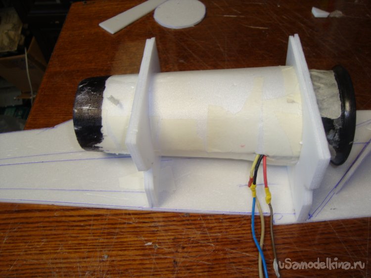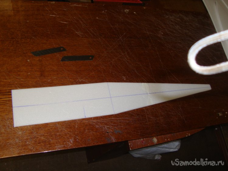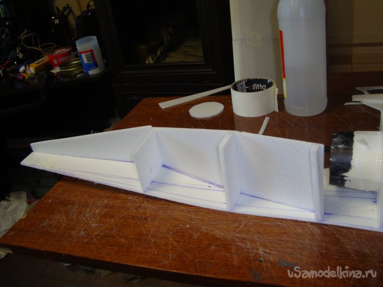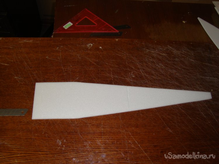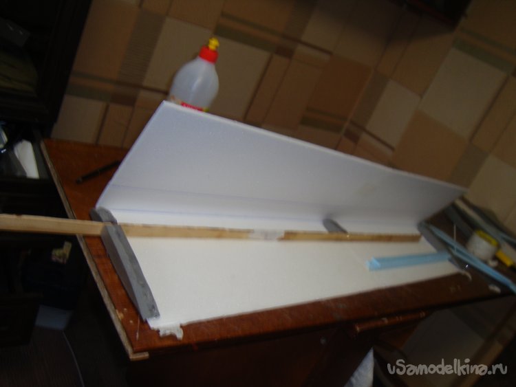 Корневую и концевые нервюры вырезал из кусочков листового утеплителя, толщиной 20 мм.