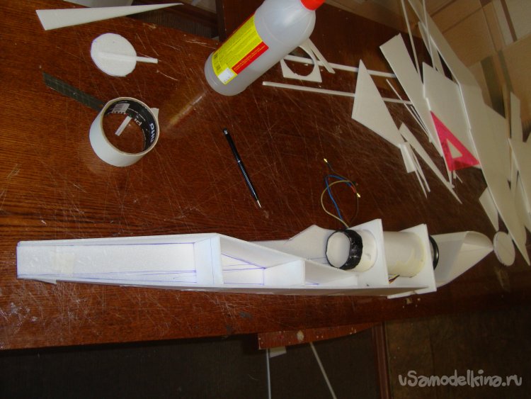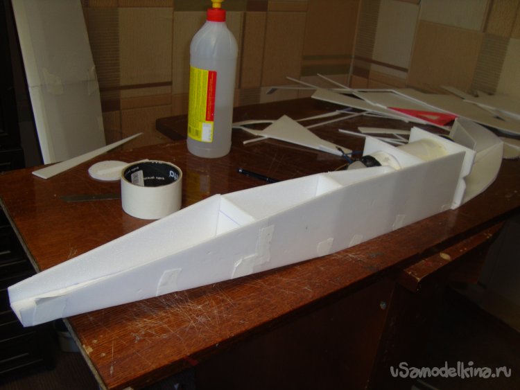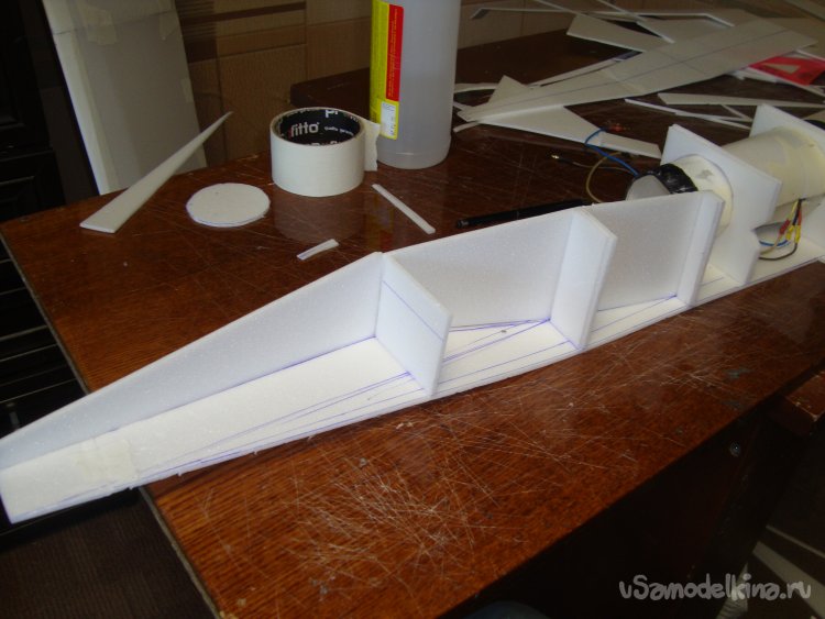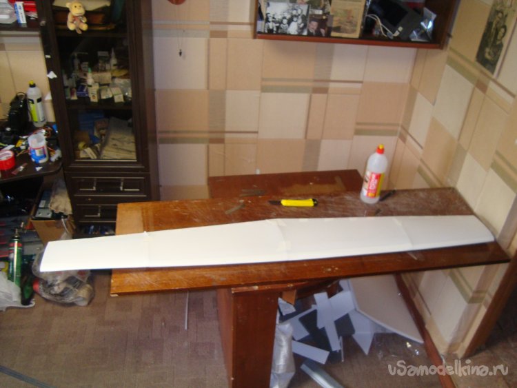 Склеил детали крыла. Получилось очень красивое и лёгкое крыло с V углом.
