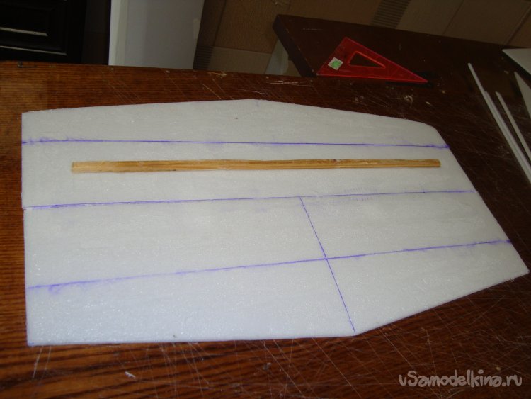 Вырезал заготовки для стабилизатора, При склеивании стабилизатора, усилил его деревянной реечкой сечением 4 х 4 мм.
