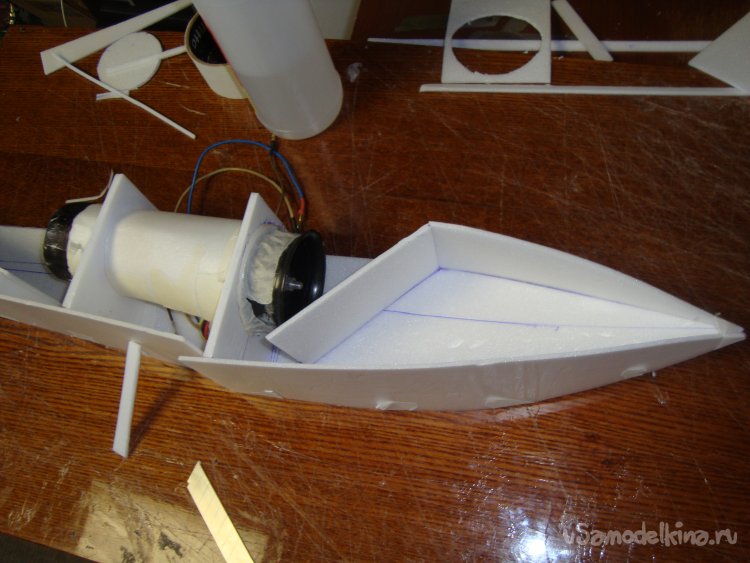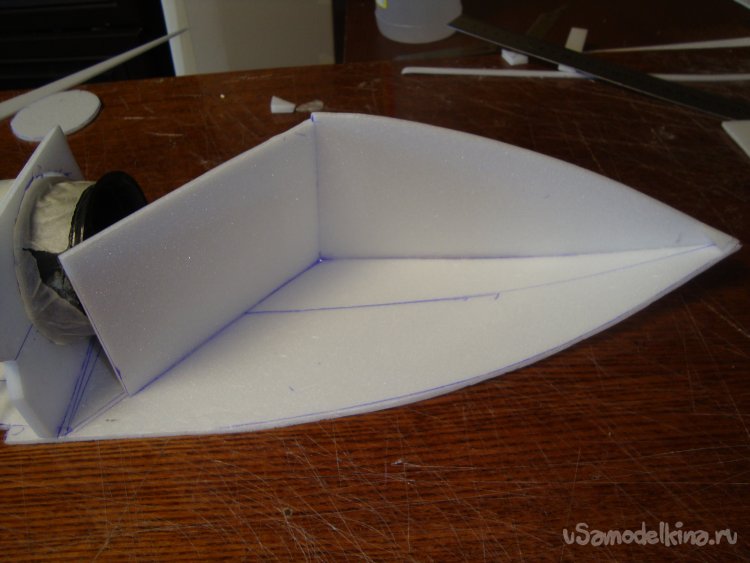 Для крепления импеллера вырезал вертикальные перегородки из потолочки, примерил.