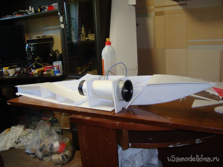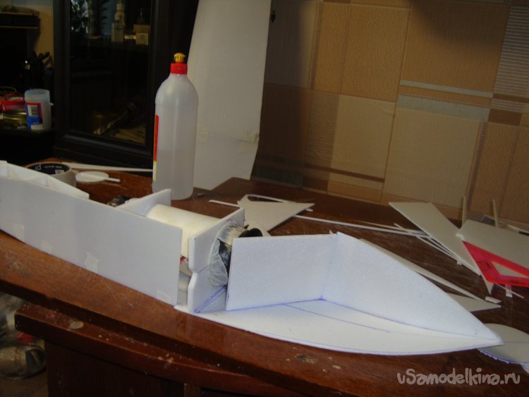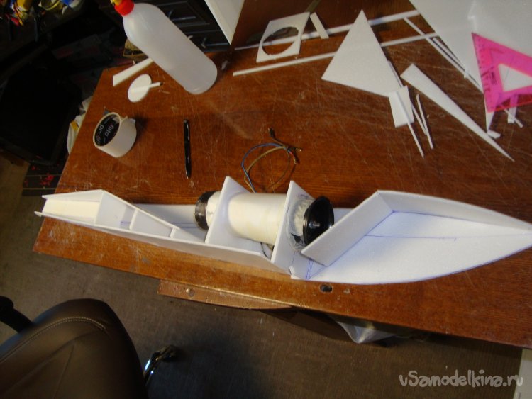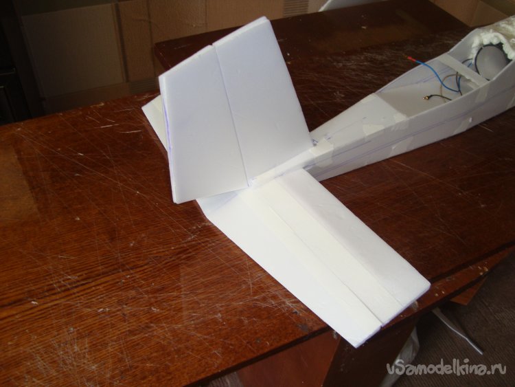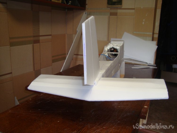 Так же смонтировал руль направления , примерил хвостовое оперение на фюзеляжи вклеил.