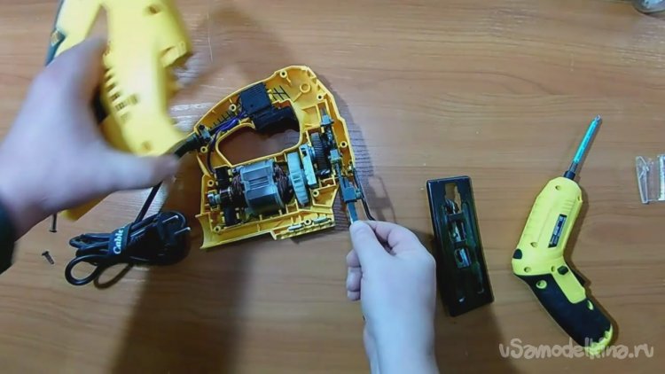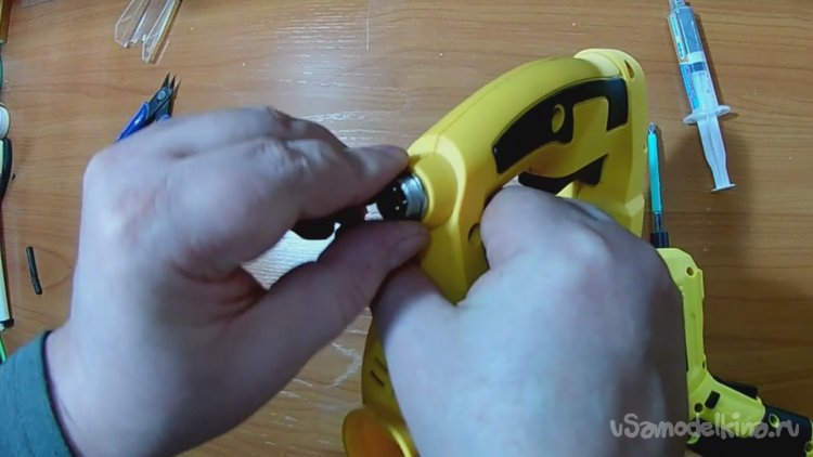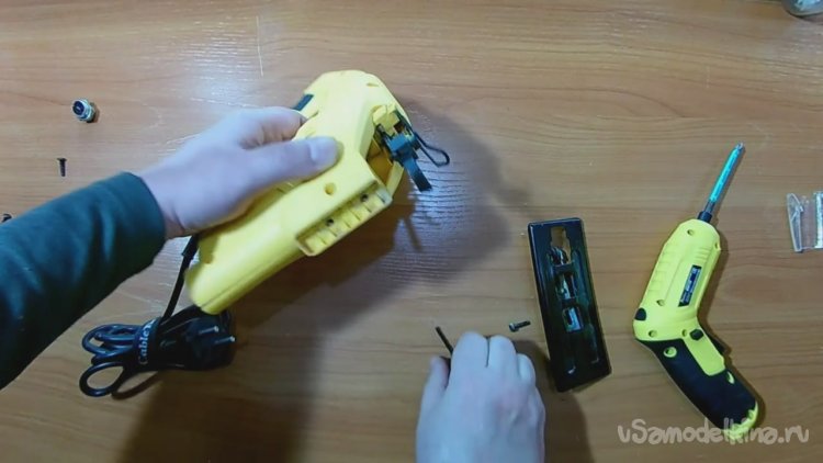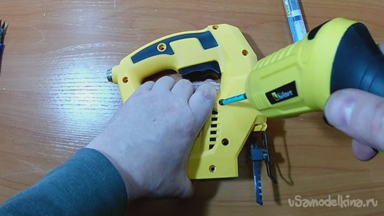 И собираем лобзик. Сначала сам корпус затягиваем саморезами.