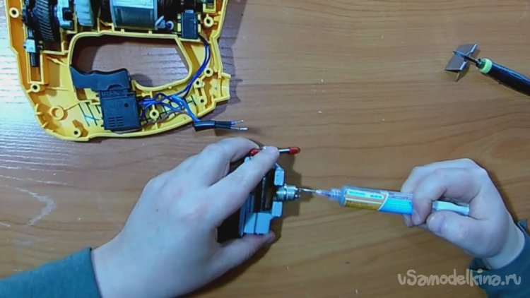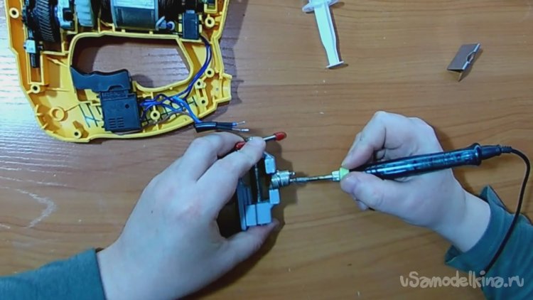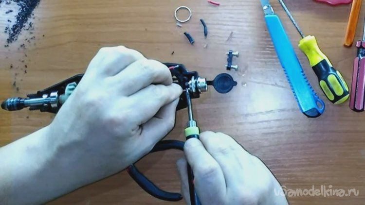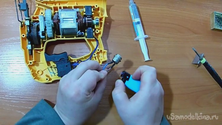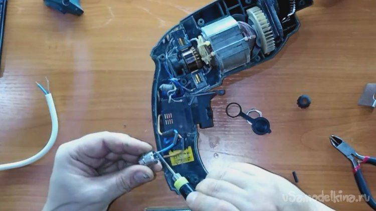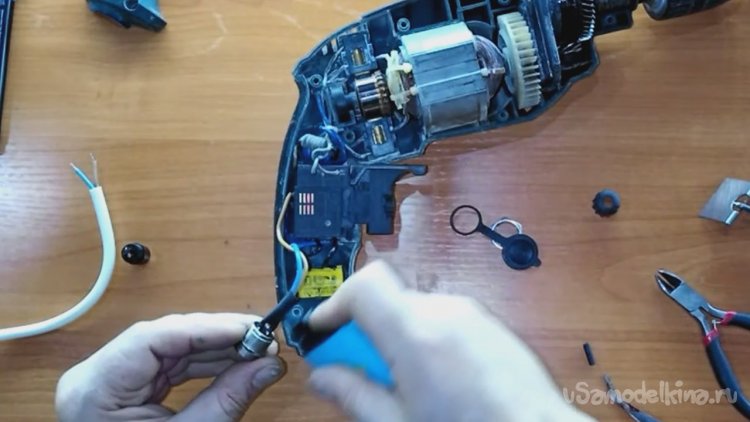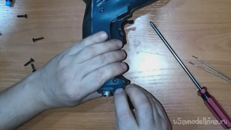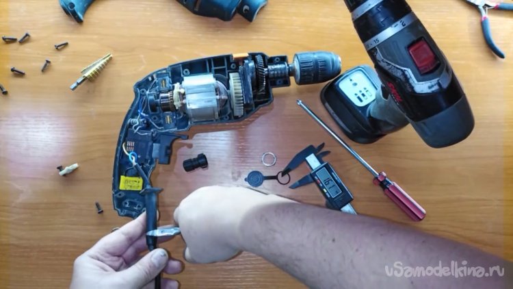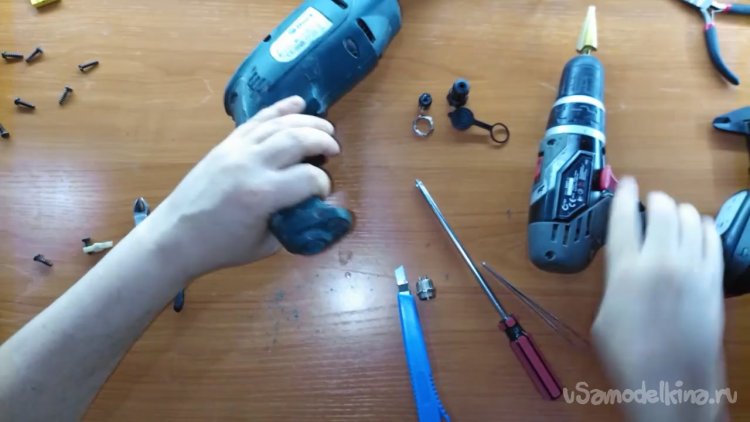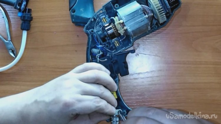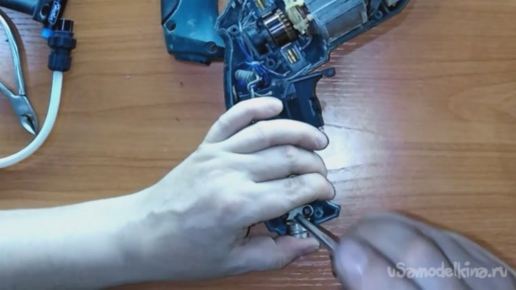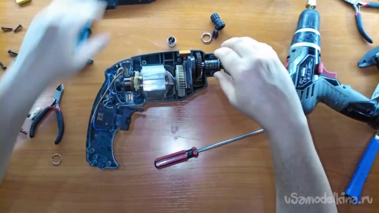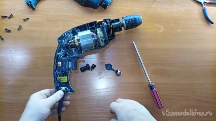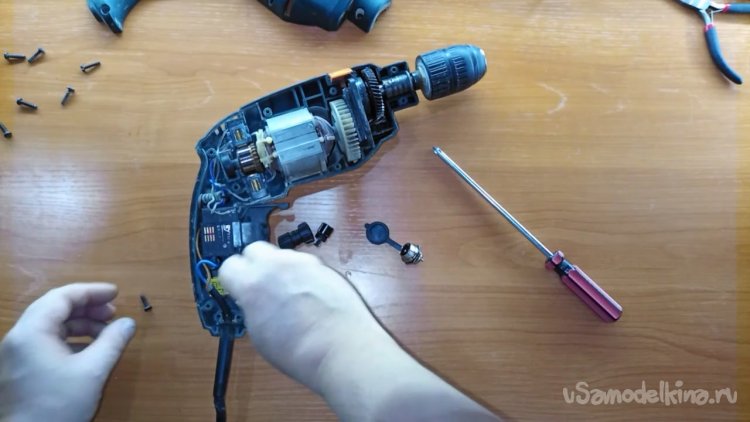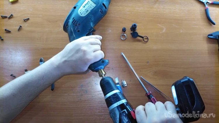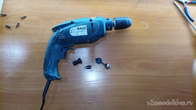 Шаг 1. Разборка дрели и подготовка отверстия под разъём.