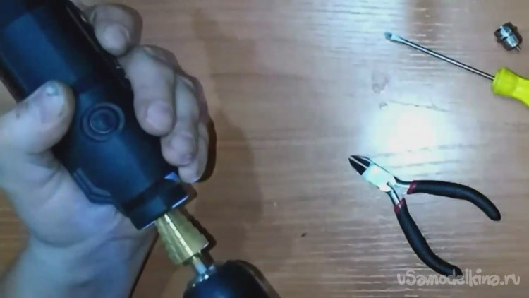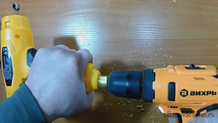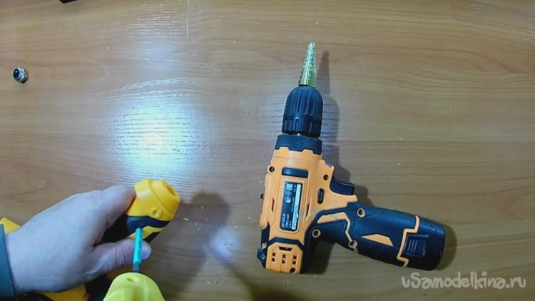 Вставил в патрон шуруповёрта ступенчатое сверло.