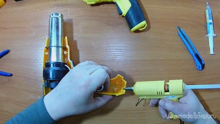 Тут маленький нюанс - для жёсткости крепления решил применить горячий клей.