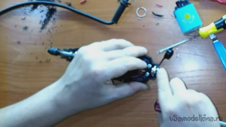 Открываем корпус. Обрезаем лишний провод. Зачищаем концы проводов.