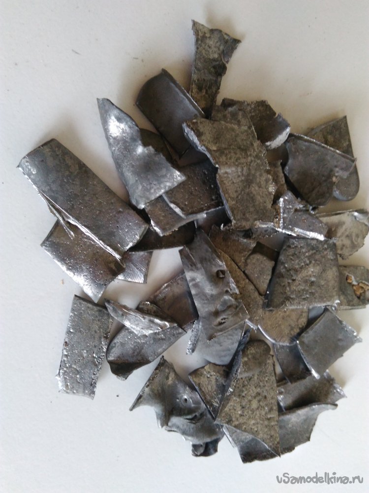 Взял свинец он в моем случае был расплавлен раньше. Нарезал маленькими кусочками ножницами по металлу, чтоб бестией расплавить.