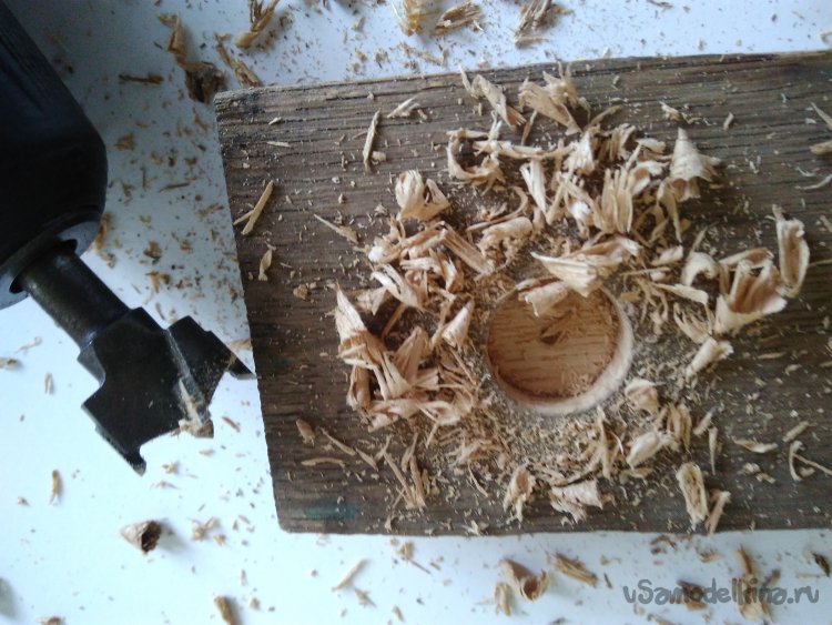 Теперь надо просверлить сквозное отверстие, это лучше делать с обеих сторон по половинке.