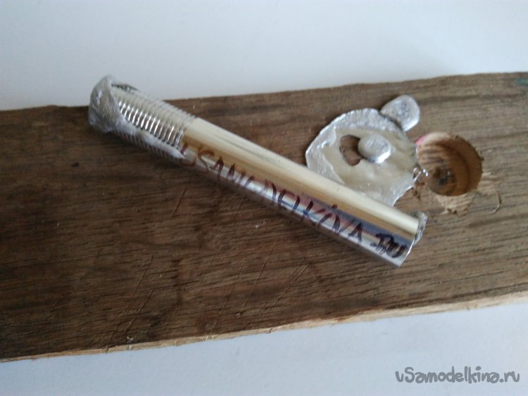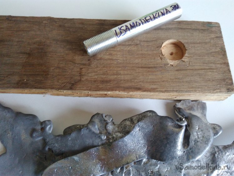 Потом нашёл у себя не большой дубовый брусок, он нужен для удержания трубки вертикально при заливке свинца.