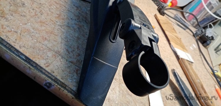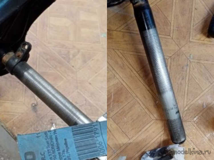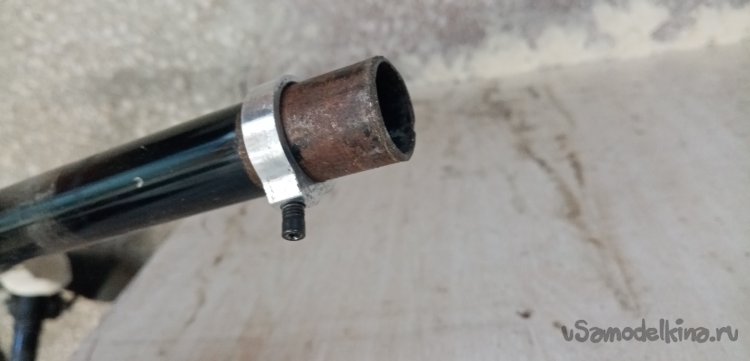 Нужно надеть хомутик и установить на трубке крыло. Снимаю трубу вместе с седлом. И вот под седлом обнаружил остатки прежнего крепления крыла. Практически целые. Прикол, однако.