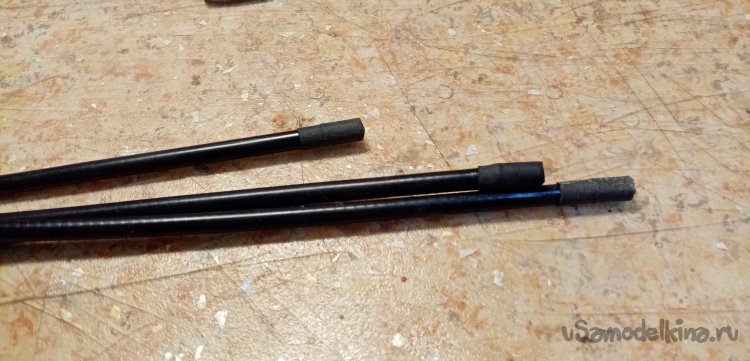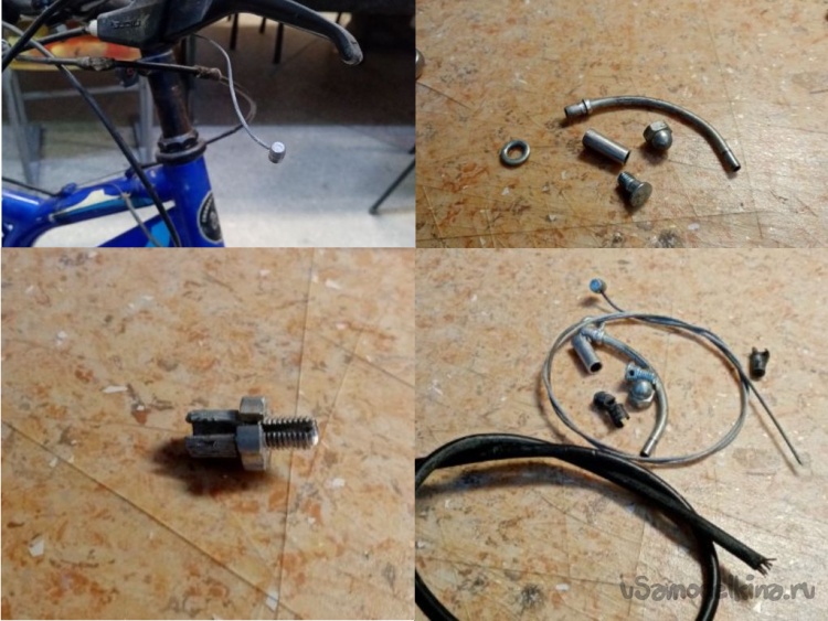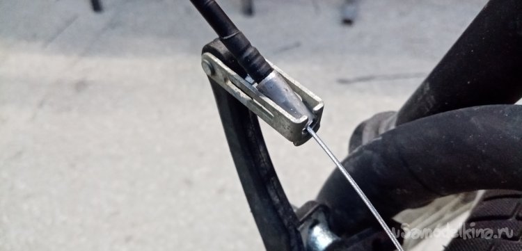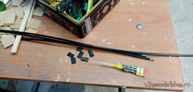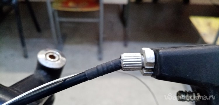 Продеваю тросик по новой в ручки. Затем по схеме: промеряю нужную длину, откусываю боуден, затачиваю торцы на наждаке, устанавливаю наконечники и поверх термоусадку на циакрине.