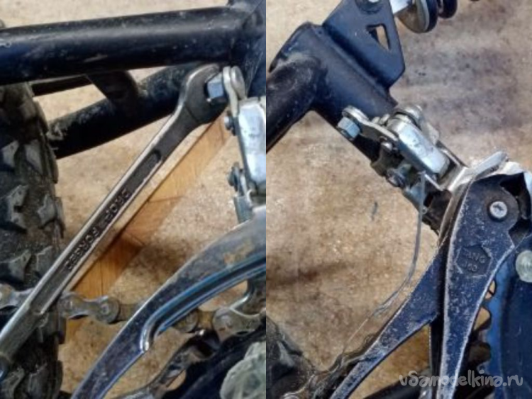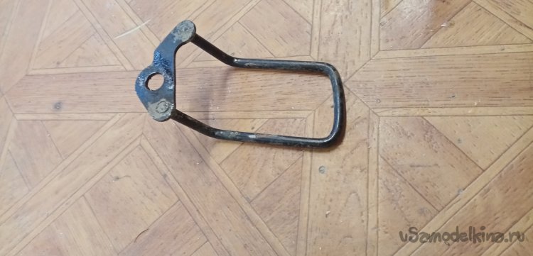 Защита заднего переключателя, тоже немного не прямая. Проливаю ВД-40, немного возни и откручиваю прикипевшие гайки крепления. Зажимаю в тиски и исправляю кривулину.