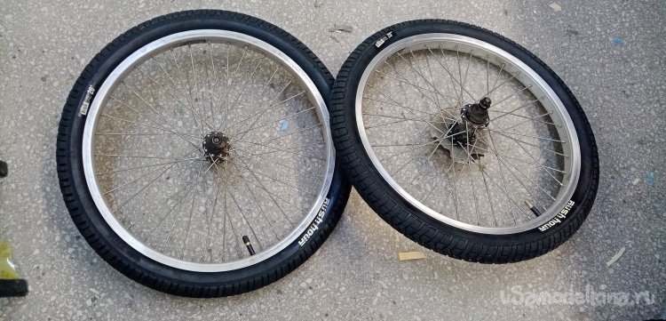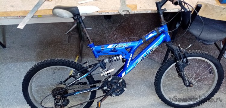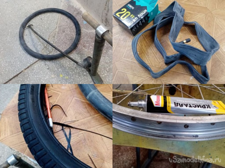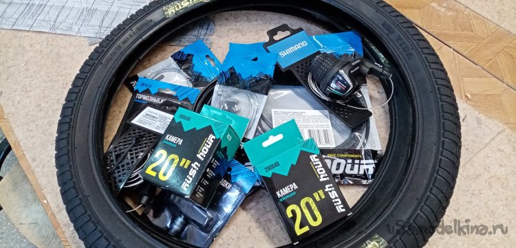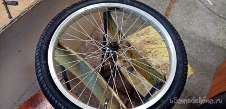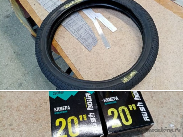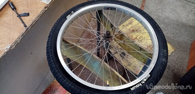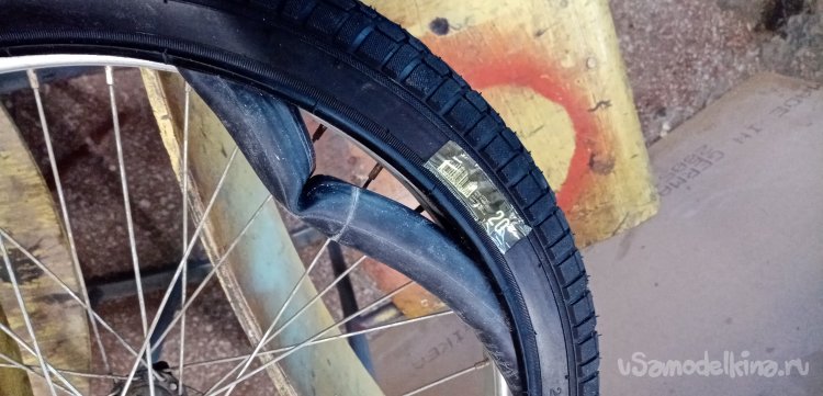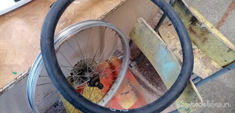 Помыли страдальца за сто рублей с пеной и брызгами. Протер сиденье от воды, поехал обратно. На полпути лопнула задняя шина. Дотащился на полусогнутых. Положил в багажник пленку на нее мокрый велосипед, поехал в моделку. Где же еще восстанавливать аппарат. У меня в гараже нет столько инструмента и оборудования.