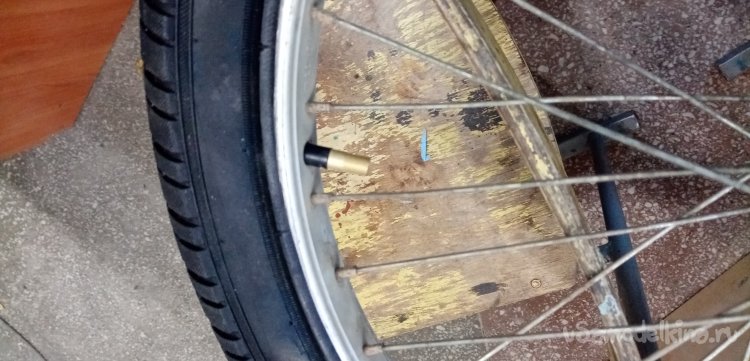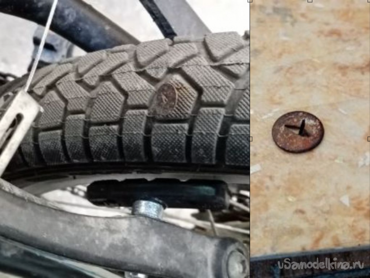 во время продолжительных прогулок на восстановленном велосипеде всем составом авиамодельного кружка привезли с улицы кнопку в колесе. прокола не было.