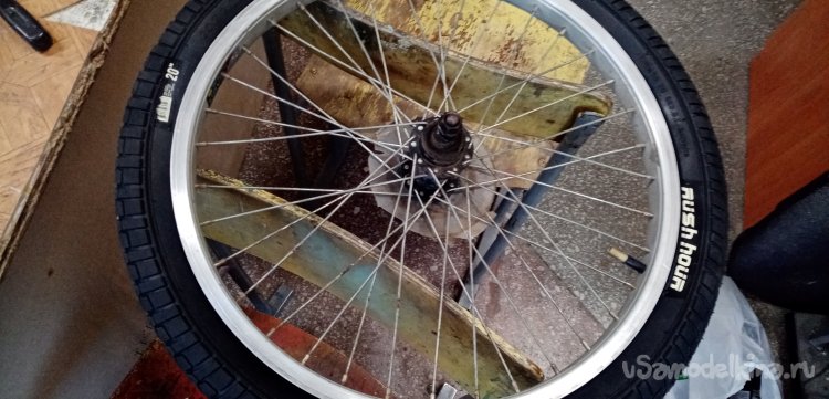 Срезаю облой с покрышки. При помощи клея «Момент Супер Кристалл прозрачный» приклеиваю защитную резинку на головки спиц внутри обода.
